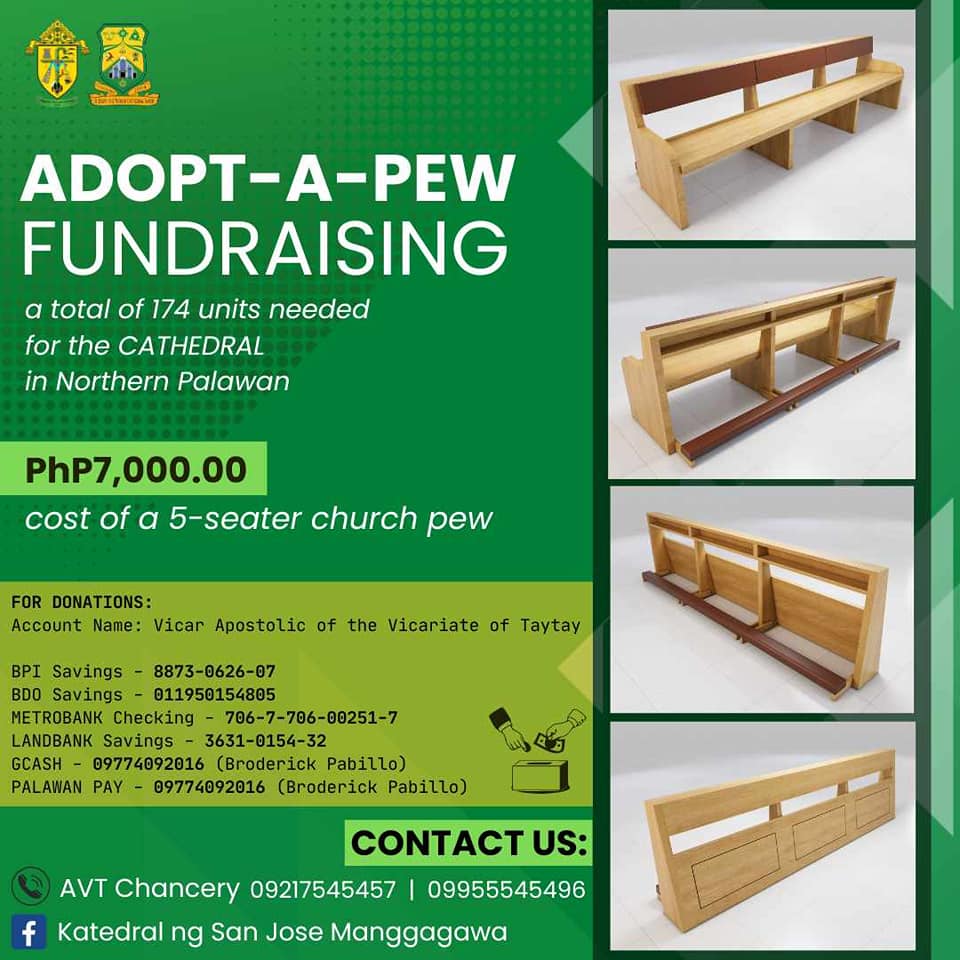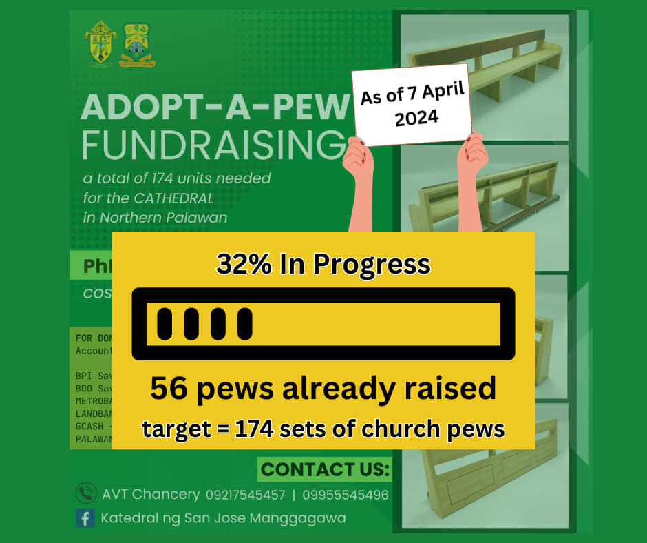 We have already obtained funds for 56 sets of church pews as of April 7, 2024.